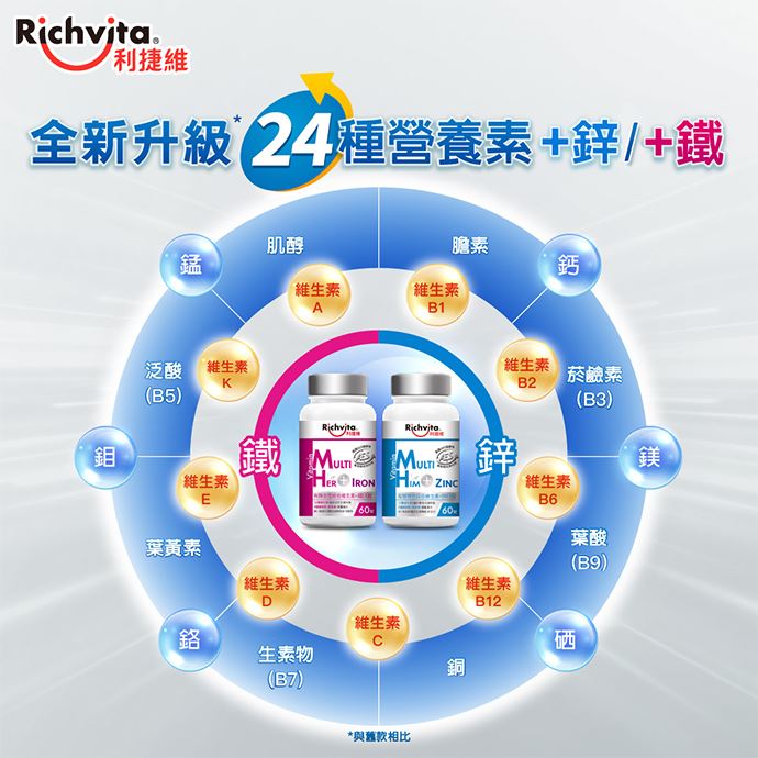 利捷維有酵男性綜合維生素+鋅EX:乳糖、抗壞血酸(維生素C)、維生素E(乙酸dl-α-生育醇酯、葡萄糖漿、辛烯基丁二酸鈉澱粉、二氧化矽)、碳酸鈣、聚乙烯吡咯烷酮、硒酵母、葡萄糖酸錳、鉬酵母、菸鹼醯胺、肌醇、鉻酵母、氧化鋅、硬脂酸鎂、二氧化矽、重酒石酸膽鹼(重酒石酸膽鹼、二氧化矽)、氧化鎂、丁烯二酸亞鐵、羥丙基甲基纖維素、金盞花萃取物[麥芽寡糖、阿拉伯膠、金盞花萃取物(含葉黃素)、混合濃縮生育醇(抗氧化劑)、二氧化矽、L-抗壞血酸棕櫚酸酯(抗氧化劑)]、美國AES發酵物[大豆發酵粉(大豆發酵物、氧化鎂、乳酸鈣、葡萄糖酸鋅、葡萄糖酸錳)]、維生素A醋酸鹽[葡萄糖漿、阿拉伯膠、玉米澱粉、維生素A醋酸鹽、DL-α-生育醇(抗氧化劑)]、聚乙二醇、本多酸鈣、膽鈣化醇(維生素D3) [辛烯基丁二酸鈉澱粉、蔗糖、抗壞血酸鈉(抗氧化劑)、中鏈三酸甘油酯、二氧化矽、DL-α-生育醇(抗氧化劑)、維生素D3]、二氧化鈦、食用紅色四十號鋁麗基、維生素B12(麥芽糊精、檸檬酸鈉、檸檬酸、維生素B12)、硫酸銅、鹽酸吡哆辛(維生素B6)、硝酸硫胺明(維生素B1)、核黃素(維生素B2)、維生素K1(阿拉伯膠、維生素K1、蔗糖)、食用藍色一號鋁麗基、葉酸、生物素。 利捷維有酵維生素B群+C+牛磺酸發泡錠:檸檬酸、L-抗壞血酸(維生素C)、碳酸氫鈉、D-山梨醇、聚乙二醇、檸檬粉末香料(麥芽糊精、海藻糖、香料、辛烯基丁二酸鈉澱粉)、檸檬香料粉(乳糖、二氧化矽、香料)、牛磺酸、醋磺內酯鉀(甜味劑)、菸鹼醯胺、蔗糖素(甜味劑)、本多酸鈣、維生素B12【麥芽糊精、檸檬酸鈉、檸檬酸、維生素B12】、鹽酸吡哆辛(維生素B6)、硝酸硫胺明(維生素B1)、核黃素(維生素B2)、美國AES發酵物【大豆發酵物(大豆發酵萃取物、氧化鎂、乳酸鈣、葡萄糖酸鋅、葡萄糖酸錳) 】、葉酸、生物素。 B群+C錠:抗壞血酸(維生素C)、乳糖、鹽酸吡哆辛(維生素B6)、核黃素(維生素B2)、菸鹼醯胺、硝酸硫胺明(維生素B1)、聚乙烯吡咯烷酮、本多酸鈣、肌醇、膜衣(羥丙基甲基纖維素、羥丙基纖維素、聚乙二醇)、美國AES發酵物[大豆發酵物(大豆發酵萃取物、氧化鎂、乳酸鈣、葡萄糖酸鋅、葡萄糖酸錳)]、硬脂酸鎂、二氧化矽、食用黃色四號鋁麗基、二氧化鈦、葉酸、生物素、氰鈷胺明(維生素B12)。 |