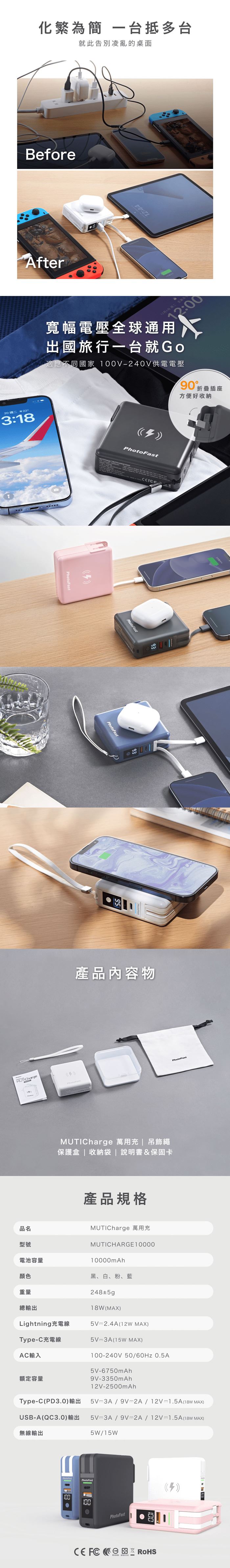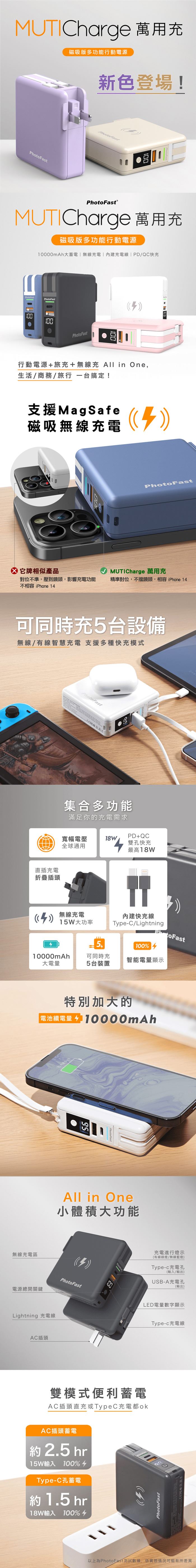 | 【商品名稱/型號】 | 【Photofast】MUTICharge 萬用充 多功能五合一行動電源10000mAh |