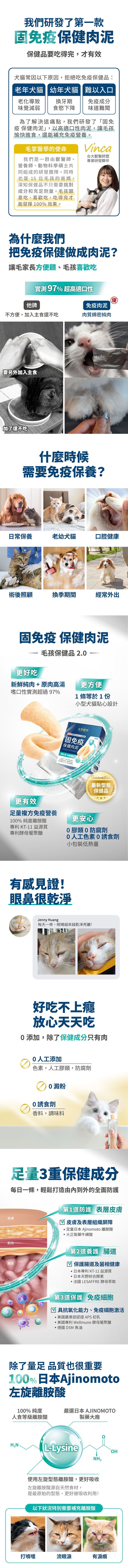 | 包裝內容/商品規格 | 免疫肉泥6g*30包 |