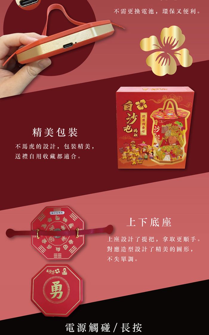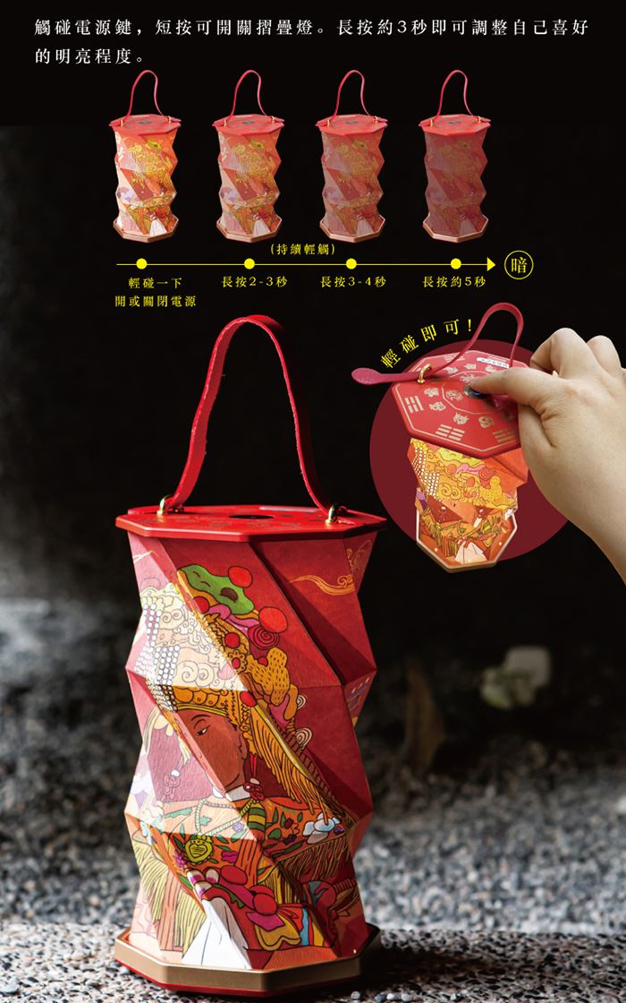 | 用途 | 超薄摺疊收納設計 開運擺飾,可手提可吊掛 觸控電源,可調燈光明亮度 |