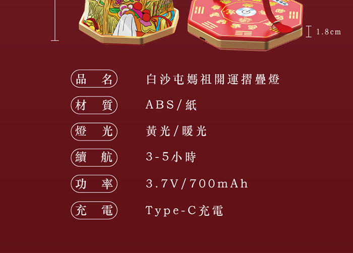| 商品名稱 | 【花太太x白沙屯媽祖】開運摺疊手提燈 | |
