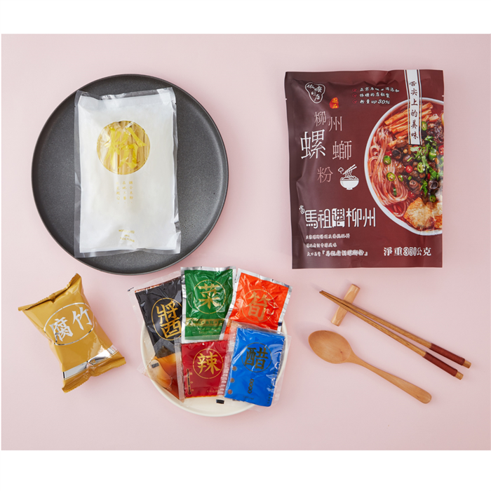 | 原產地 | 螺螄粉(調和米粉)(台灣)、螺螄湯料包(中國柳州)、酸豆角蘿蔔乾木耳包(中國柳州)、酸筍包(中國柳州)、腐竹包(中國柳州)、辣油包(中國柳州)、醋包(中國柳州)、馬祖老酒(馬祖)。 |