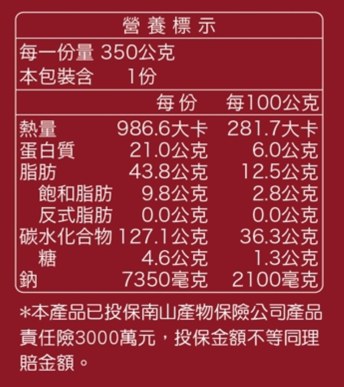 | 營養標示 | 詳見商品說明 |