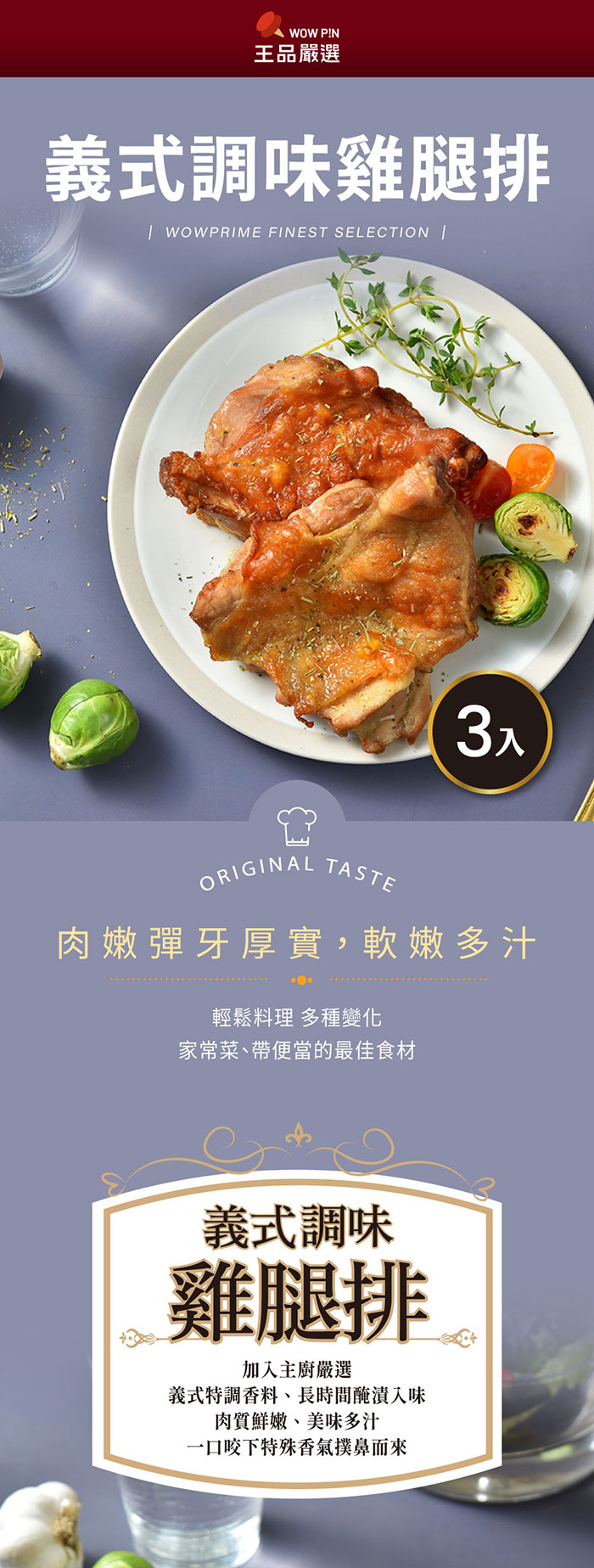 | 商品名稱 | 王品嚴選義式調味雞腿排(3片) | |