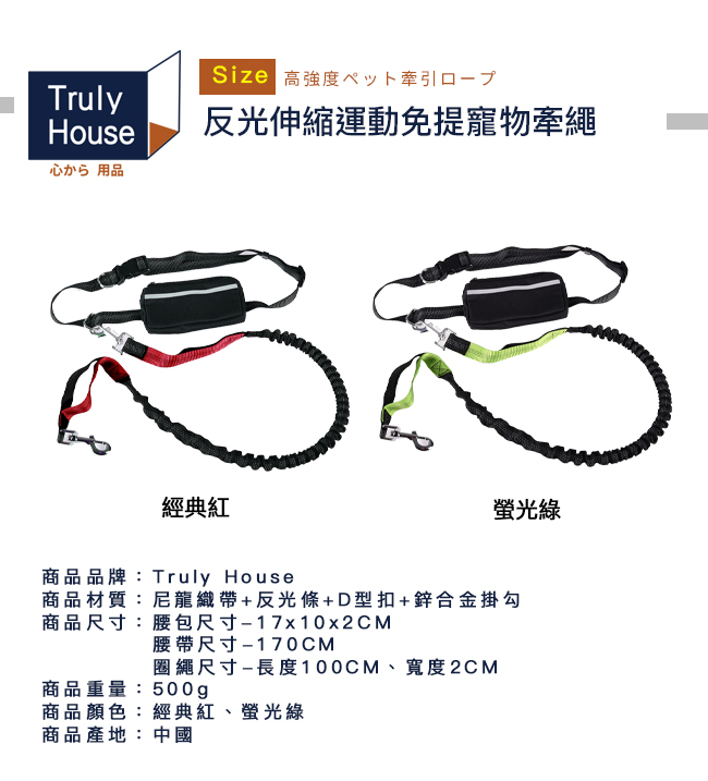 | 商品名稱 | 【Truly House】反光伸縮運動免提寵物牽繩超值組 (兩色可選) |