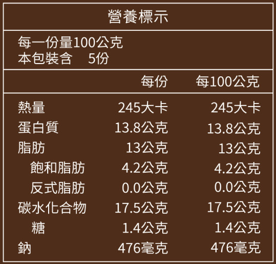 | 營養標示 | 如賣場圖示 |