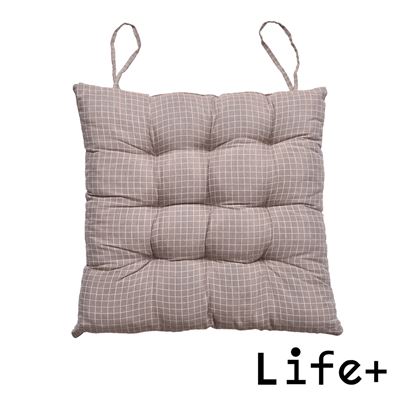 Life+ 日系無印風 棉麻格紋透氣坐墊/椅墊/靠墊 (咖啡)