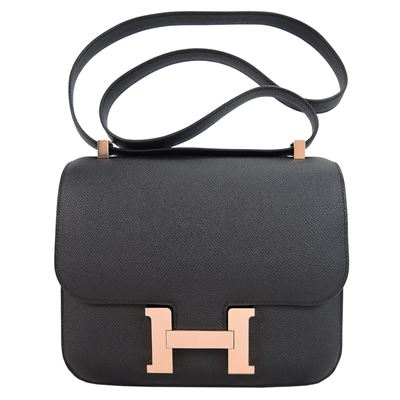 【Hermes】Constance 24CM牛皮斜背包(89黑/C刻/玫瑰金釦) [平輸]