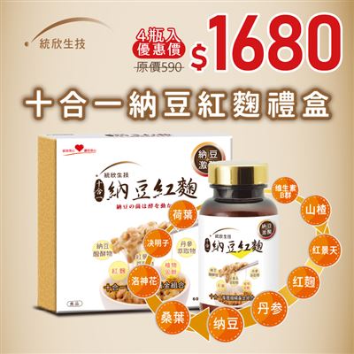統欣生技 納豆紅麴 禮盒組(4瓶/入)