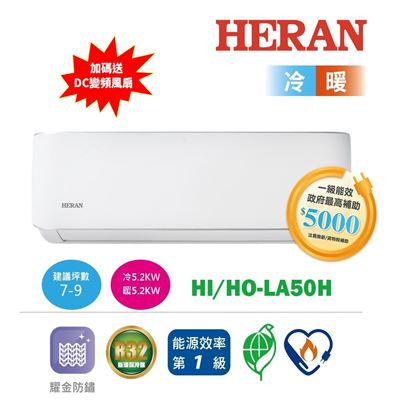 禾聯HI/HO-LA50H變頻1級能效冷暖空調(7-9坪)