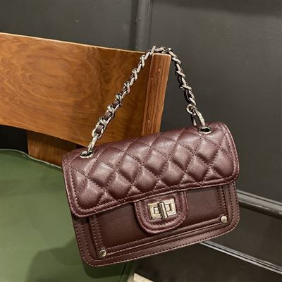 伊卡柔牛皮菱格紋翻蓋鎖扣mini替換肩帶852深紅~送手鐲項鍊