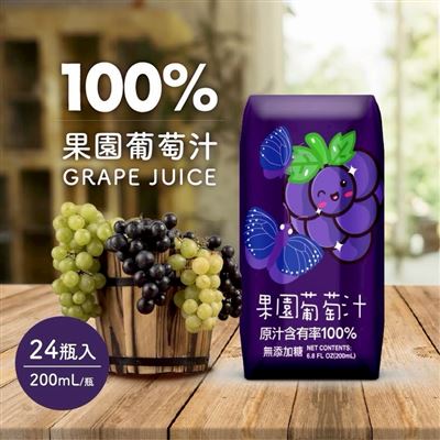 【臺北市立動物園】100%果園葡萄汁-紫斑蝶款(200ml*24瓶入/箱)