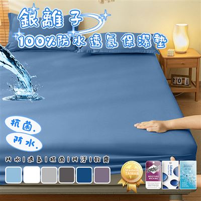【買1送1】台灣製 銀離子100%防水防螨抗菌床包式保潔墊-雙人