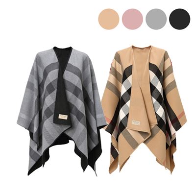 Okioki 圍巾彩虹格加厚款(卡其/中灰/米藍)