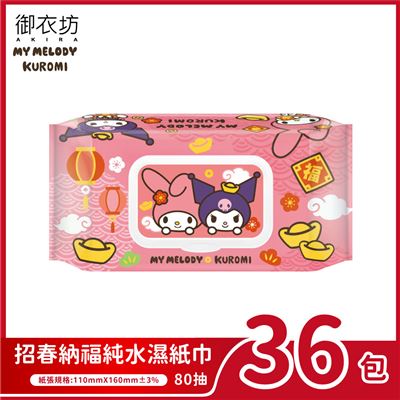 【36包入】卡娜赫拉有蓋純水濕紙巾-80抽