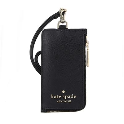KATE SPADE Lena 荔枝皮革拉鍊小手拿鑰匙零錢包(黑色)