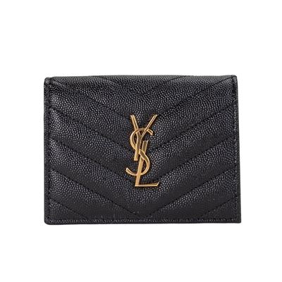 YSL新款燙金LOGO粒紋小牛皮鎖掛手提/斜背包(黑色) 平行輸入