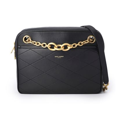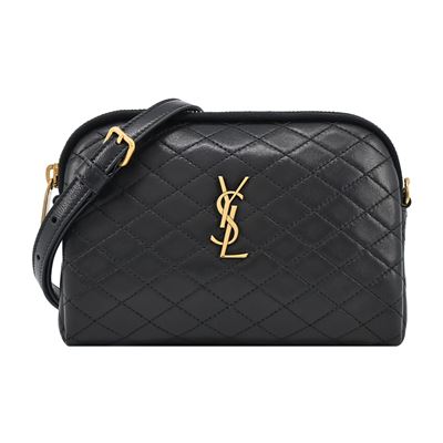 YSL GABY絎縫金屬LOGO小羊皮斜背包(黑金)平行輸入