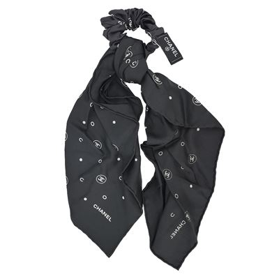 CHANEL 印花絲綢斜紋絲巾/髮飾(黑色)平行輸入