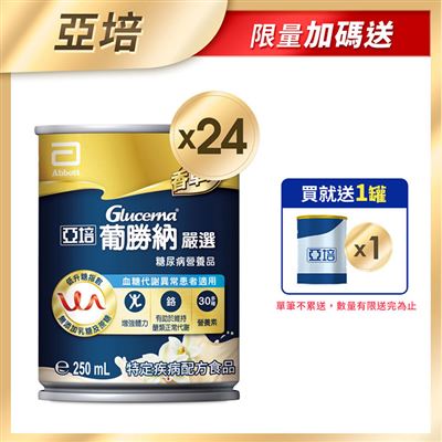 【限時買1箱送2罐】亞培 葡勝納嚴選糖尿病營養品-香草250mlx24入