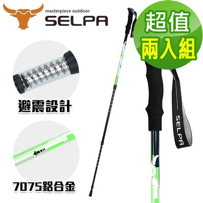 【韓國SELPA】雲頂7075鋁合金避震登山杖(綠色2入)