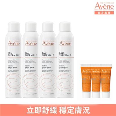 【雅漾】 舒護活泉水300ml四入組[加贈全效緊緻防曬液5ml*3入]