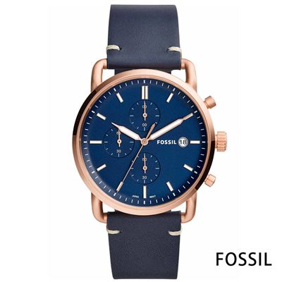 FOSSIL FB-01 個性時尚三針鍊帶女錶藍色 ES4767-贈真皮長夾+項鍊