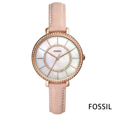 FOSSIL 星彩稜鏡光壓紋皮革石英腕錶 ES4731-桃紅贈真皮長夾+項鍊