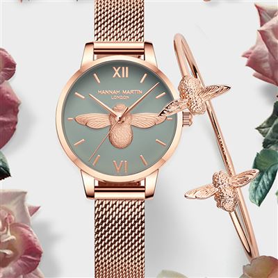 優惠價 H M 義大利設計簡約摩登手錶1052-玫金~送手鐲項鍊