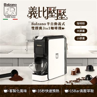 義大利Balzano 義式半自動雙膠囊3in1咖啡機-芭蕾白 BZ-CCM806