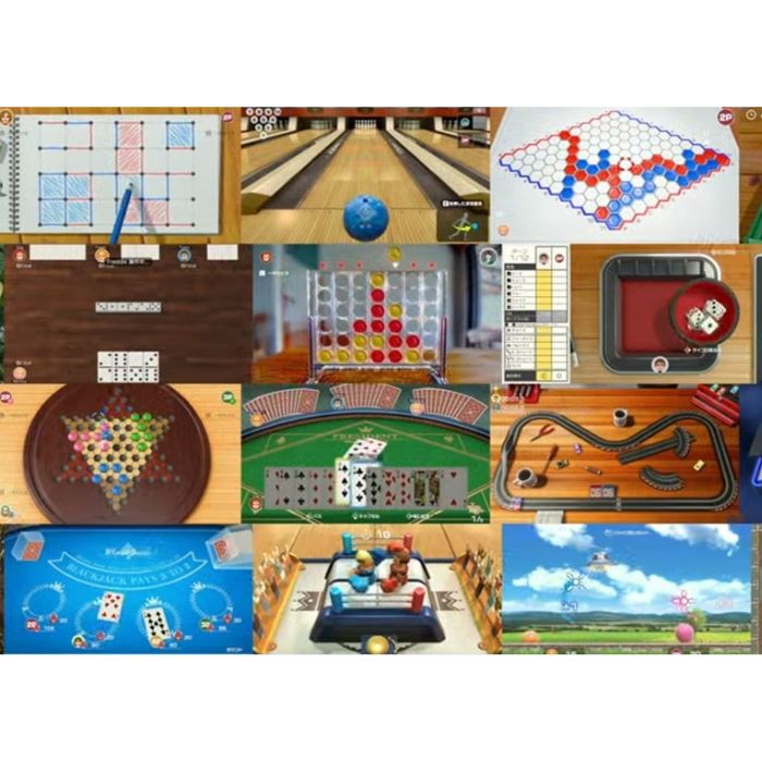 「播棋」、「花牌」、「雙陸棋」、「黑白棋」、「西洋跳棋」、「大富豪」、「西洋骨牌」、「快速接龍」、「兔子和獵犬」、「二十一點」、「四子棋」、「西洋棋」、「將棋」、「5五將棋」、「英國十字戲」、「日式麻將」、「排七」、「高爾夫球」、「飛鏢」、「德州撲克」、「直棋」、「氣墊球」、「比大小」、「彈戲」、「中國跳棋」、「快艇骰子」、「章魚燒」、「撞球」、「六貫棋」、「連環新接龍」、「五子棋」、「記憶卡牌」、「保齡球」、「射靶」、「軌道車」、「點格棋」、「猜顏色」、「豬尾巴」、「麻將對對消」、「最後一張牌」、「釣魚」、「接龍」、「玩具網球」、「玩具足球」、「玩具冰壺」、「玩具拳擊」、「玩具棒球」、「坦克對決」、「協力坦克」、「滑塊益智」、「6連珠益智」。
