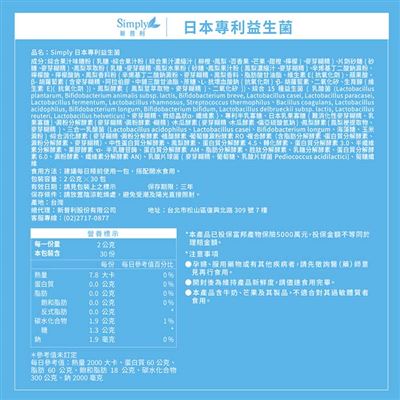 | 商品名稱 | 【Simply新普利】日本專利益生菌-3盒(30包/盒) |