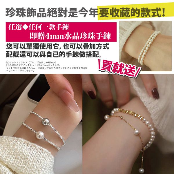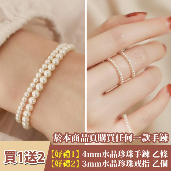 購買即贈-水晶珍珠手鍊4mm款一個+水晶珍珠戒指