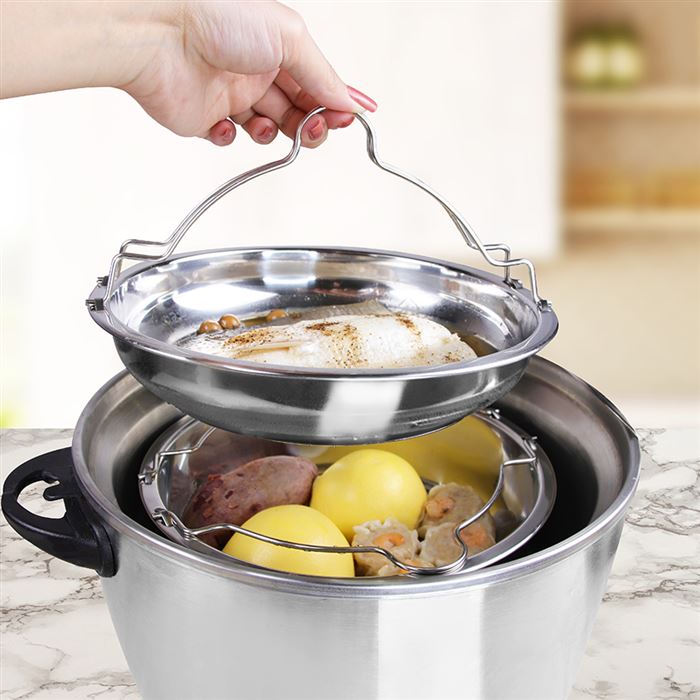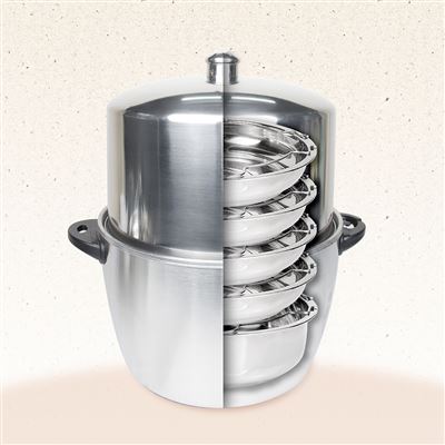 雙層蒸盤堆疊,同時蒸食多樣食材