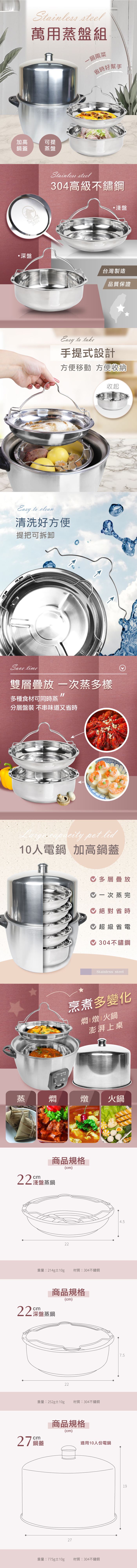 | 商品名稱 | 【LMG】台灣製304不鏽鋼電鍋蒸盤加高鍋蓋組(淺盤+深盤+加高鍋蓋) |
