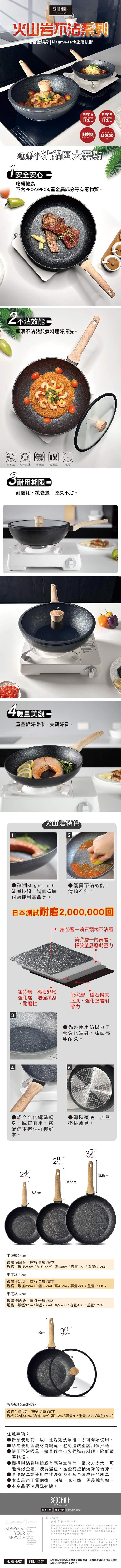 | 商品名稱 | 【仙德曼 SADOMAIN】火山岩系列-不沾深炒鍋30cm-附耐熱玻璃上蓋 |