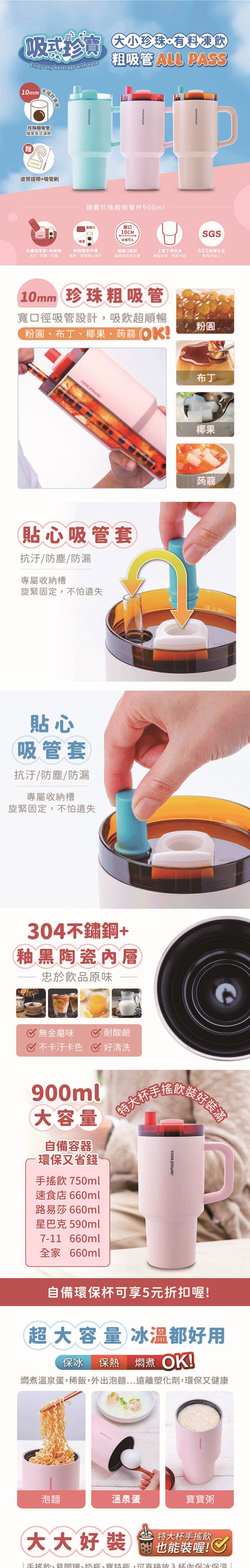 | 商品名稱 | 【鍋寶】珍珠粗吸管杯900ml (把手款) |