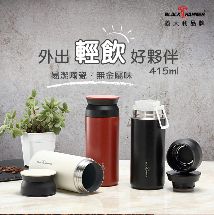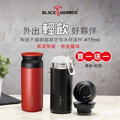 | 商品名稱 | 買一送一【BLACK HAMMER】陶瓷不鏽鋼真空保冰保溫杯415ml(黑+紅) |