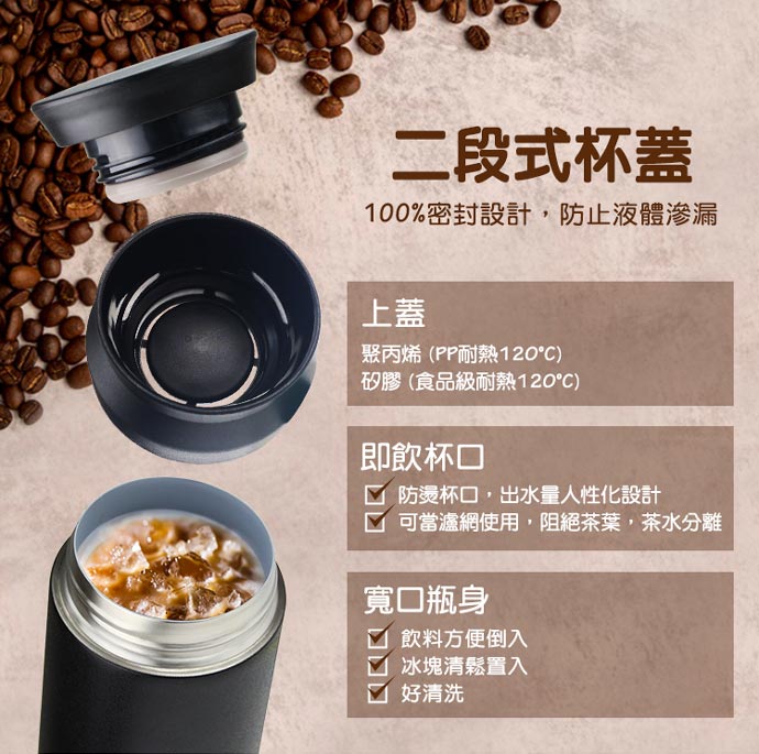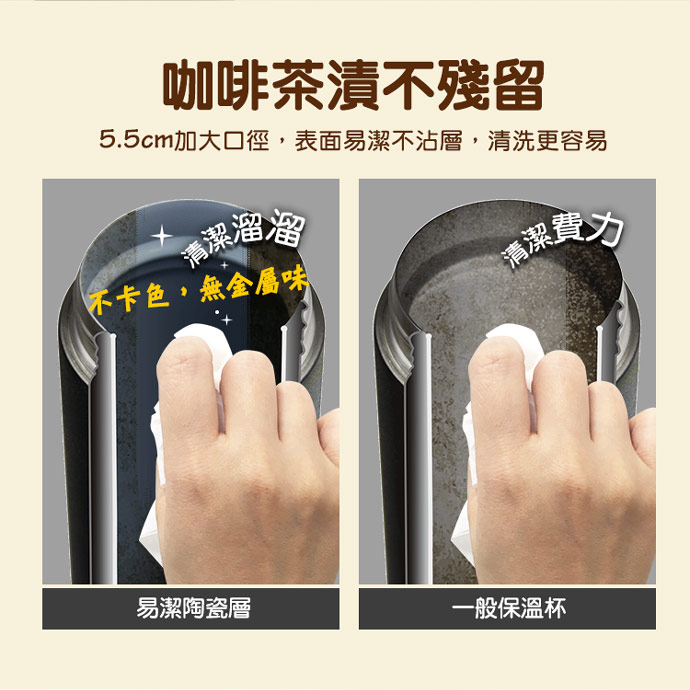 陶瓷易潔內膽,可盛裝各式飲品,無金屬味