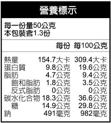| 注意事項 | 本產品含有大豆、小麥、蛋製品;並與其它含有魚類、堅果、芝麻、奶、芥末 及蝦類製品於同一產線生產,食物過敏者請留意。 |