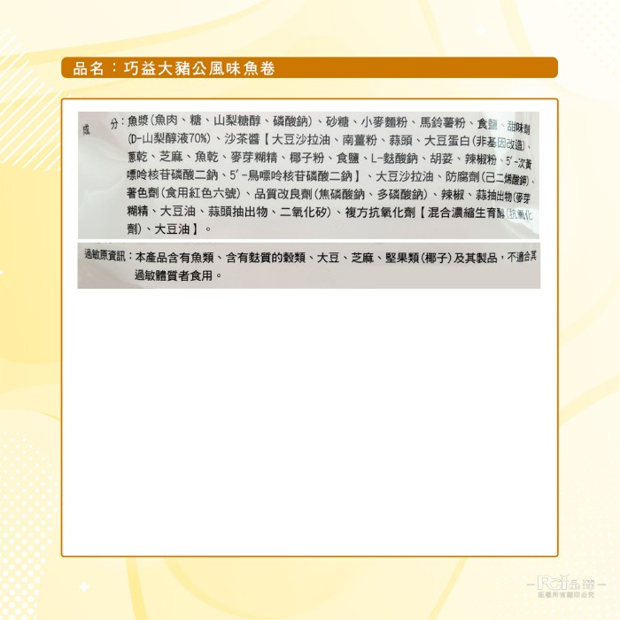 | 商品名稱 | 【巧益】大豬公風味魚卷(110g)-6入箱 |