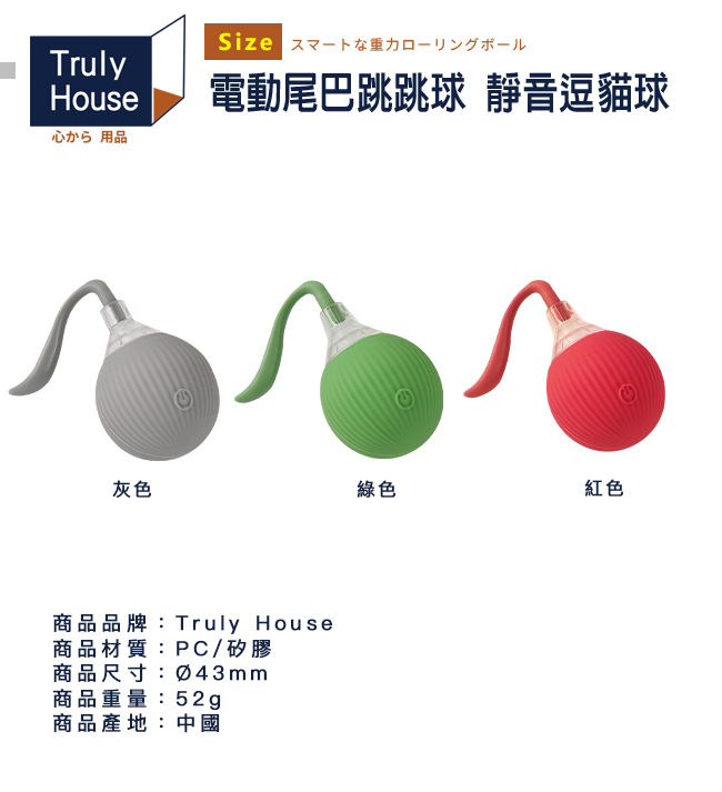 | 商品名稱 | 【Truly House】電動尾巴跳跳球 靜音逗貓球 逗貓 寵物(綠色) |