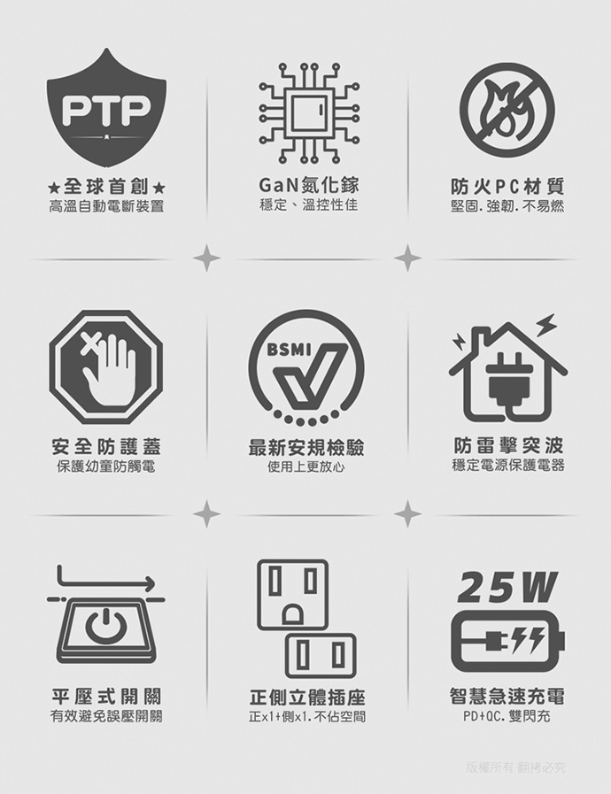 ◆插座採用PC防火材質,堅固、強韌、不易燃燒