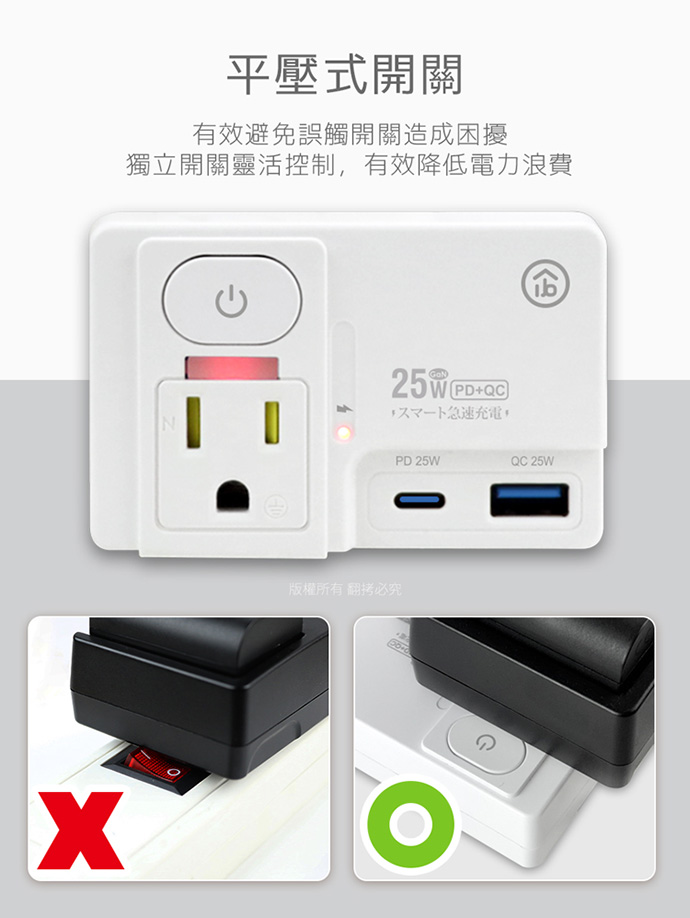◆最大25W急速快充對應(QC/PD),配備智慧識別晶片,主動識別3C設備,調整充電速度