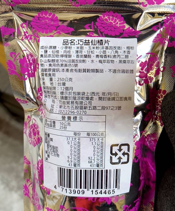 | 商品名稱 | 【巧益】仙楂片(250g)-12包組 |