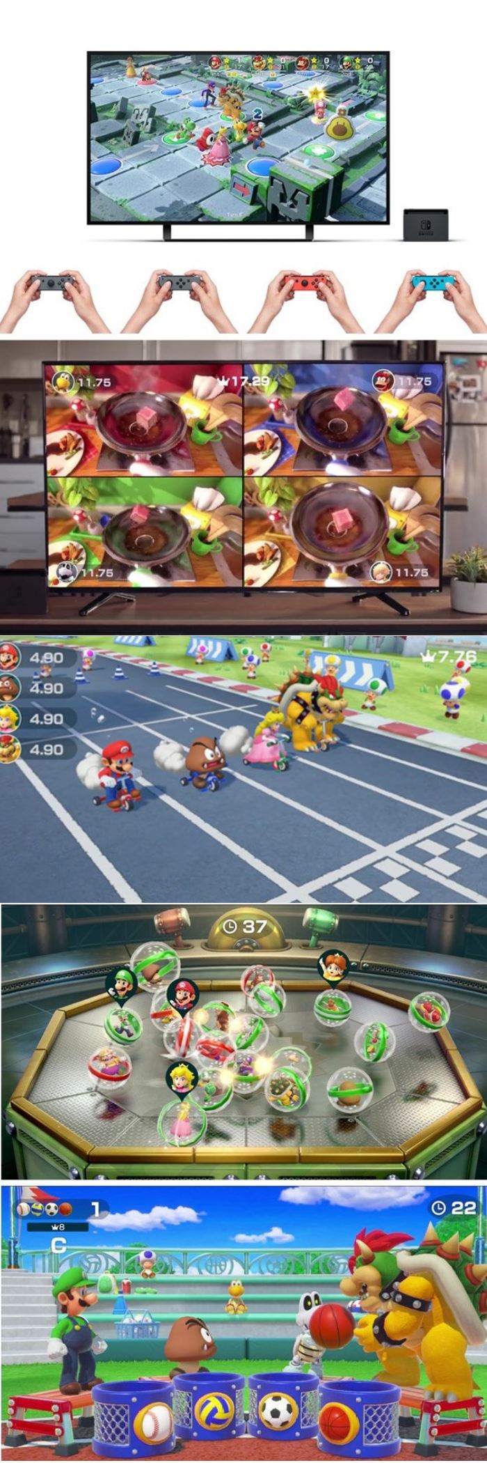 在玩具派對模式裡,將 2 台 Nintendo Switch 主機畫面並列,將會連接成一個畫面,增加了到目前為止從未享受過的各種玩法。