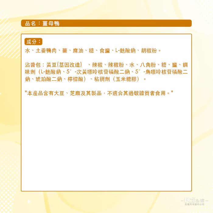 | 商品名稱 | 【雅方】薑母鴨(1000g) |