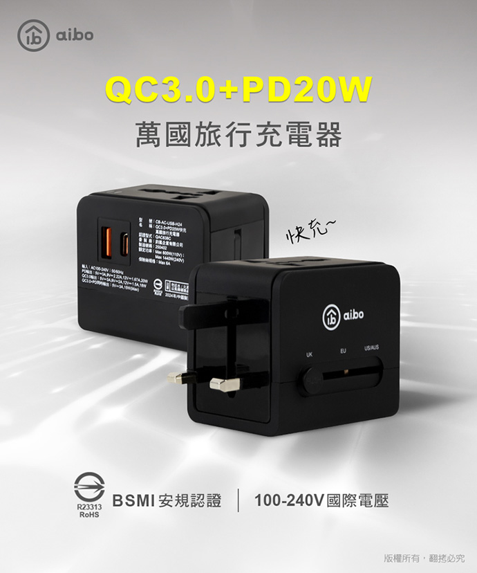 【aibo】萬國旅行充電器 QC3.0+PD20W快充 |