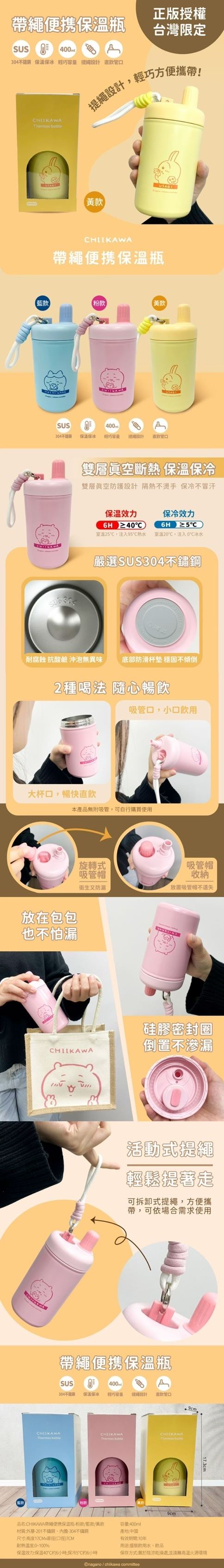 | 商品名稱 | 吉伊卡哇CHIIKAWA 帶繩便攜保溫瓶(黃款)-6入組 |