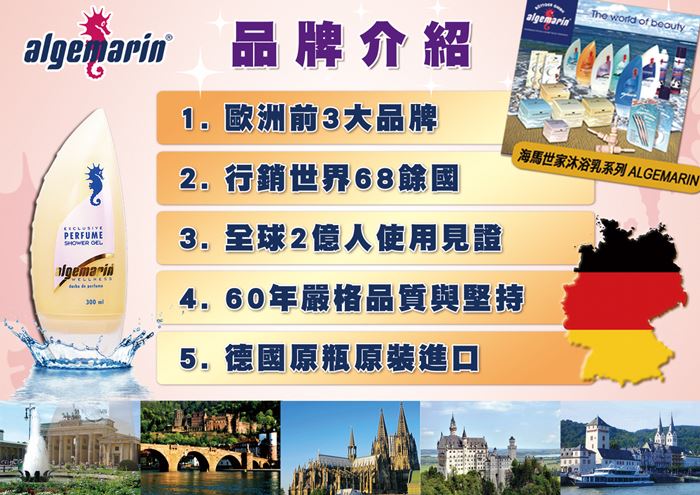 | 商品名稱/包裝內容規格 | 德國algemarin 海馬夢幻香水沐浴乳 300ml x 3入 |